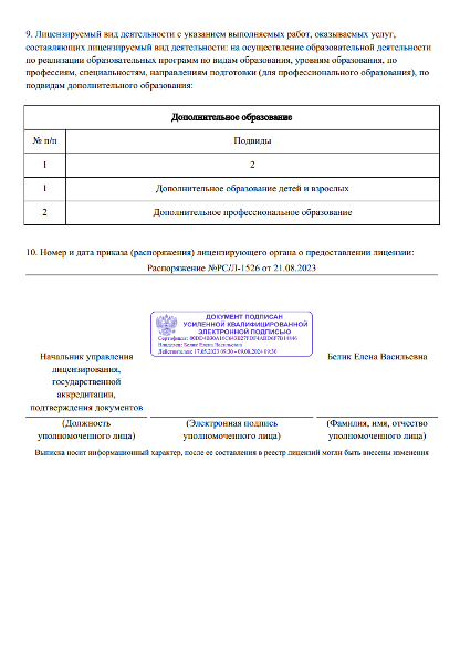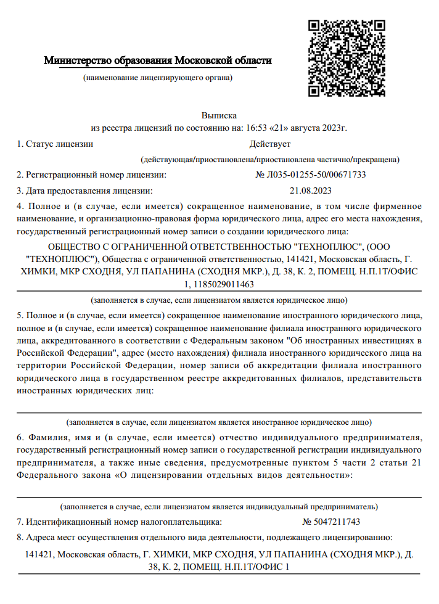 Лицензия на образовательную деятельность